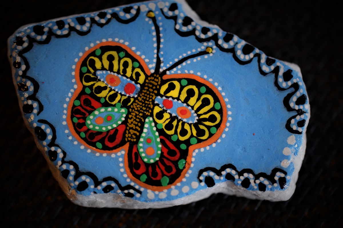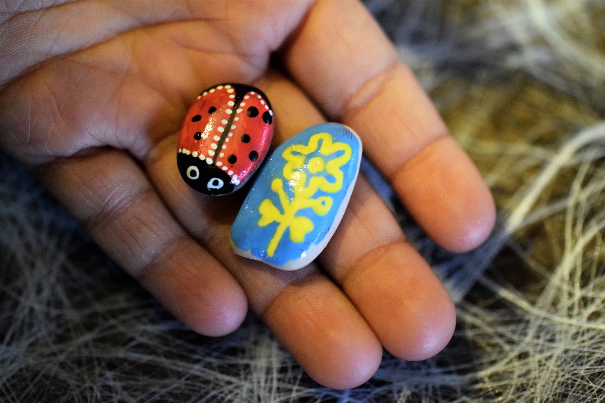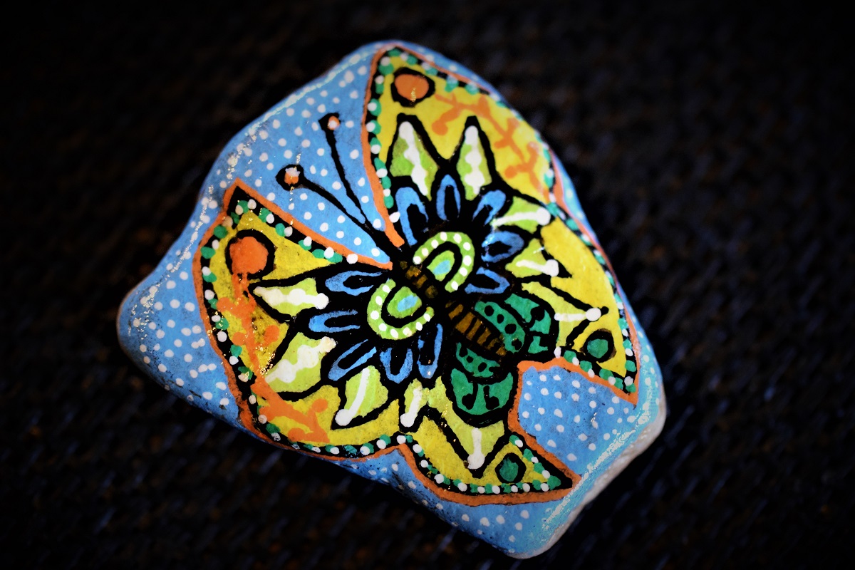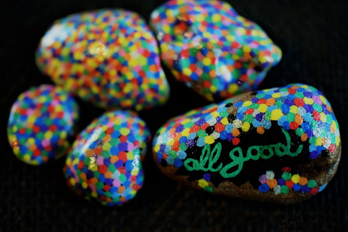 In den letzten Wochen waren Minime und ich mit Mini-Kunstprojekten beschäftigt. Ich habe mich voll und ganz dem Bemalen von Steinen hingegeben, denn dieses lässt mich zur Ruhe kommen. Ich habe es wirklich genossen etwas Glitzer, Konfetti und Farben zu einer alltäglichen Magie hinzuzufügen. Am Ende mit vielen Steinen, die zu Hause schaukelten und herumrollten, beschloss ich, sie mit Fremden zu teilen. Es macht Spaß einem Unbekannten der einen Stein findet, ein Lächeln zu schenken.